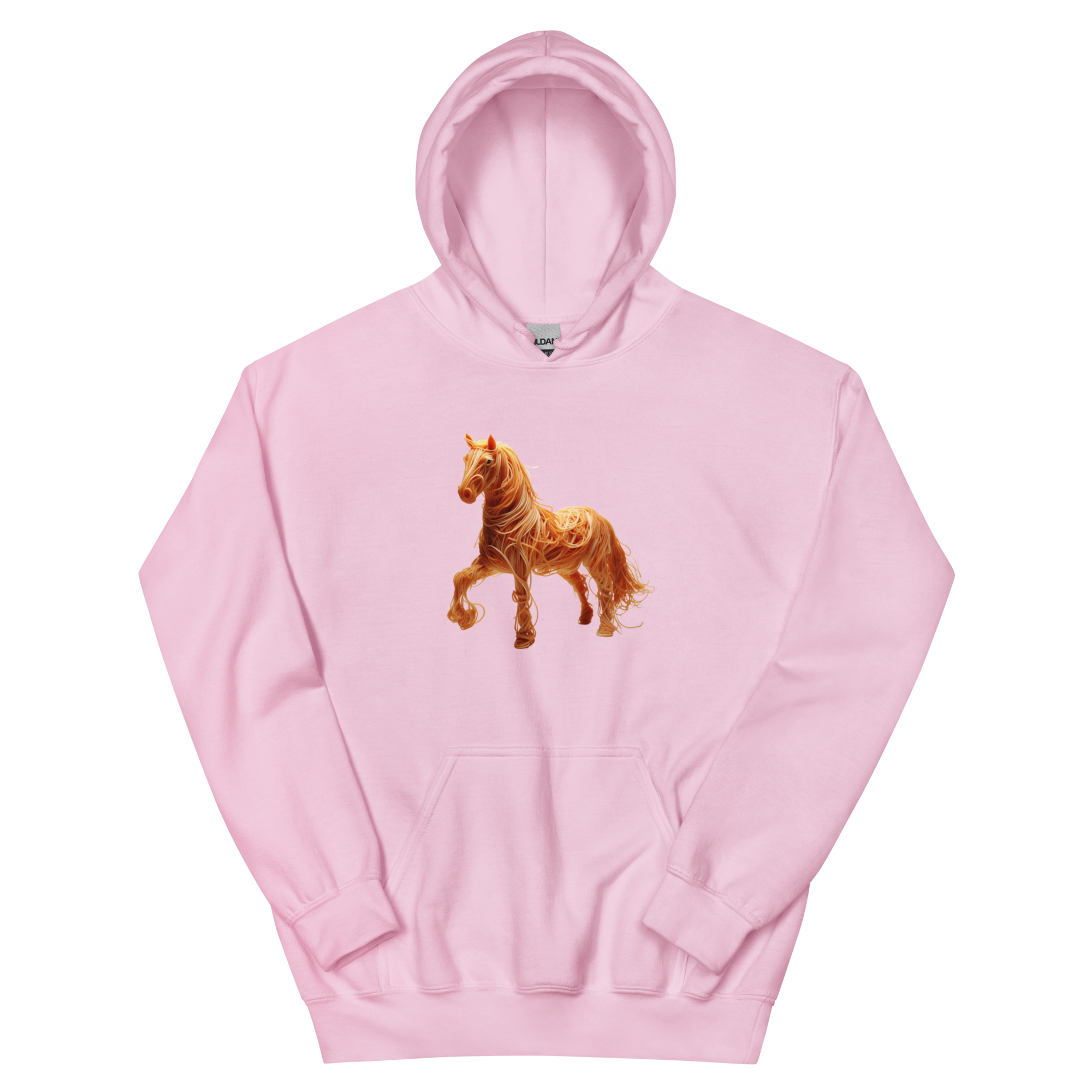 Picture a majestic horse, not made of steel or flesh, but of perfectly twirled spaghetti strands. Our Pasta Pony Bliss Hoodie is a wearable masterpiece that combines comfort with culinary creativity.